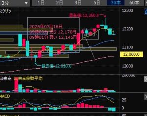 SCREENホールディングス (7735) +2,500円 いつもの下げからの空売り。安定して勝てる。 ベイカレ...