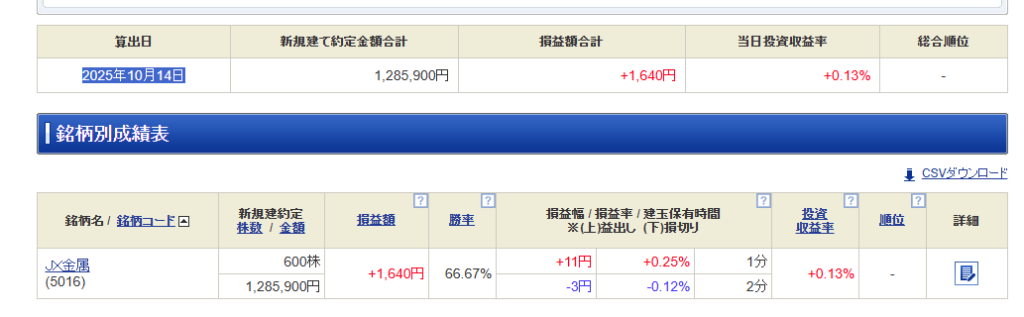 損益が7千円まで下がったので、様子見たらそこら新高値を出し損切り。